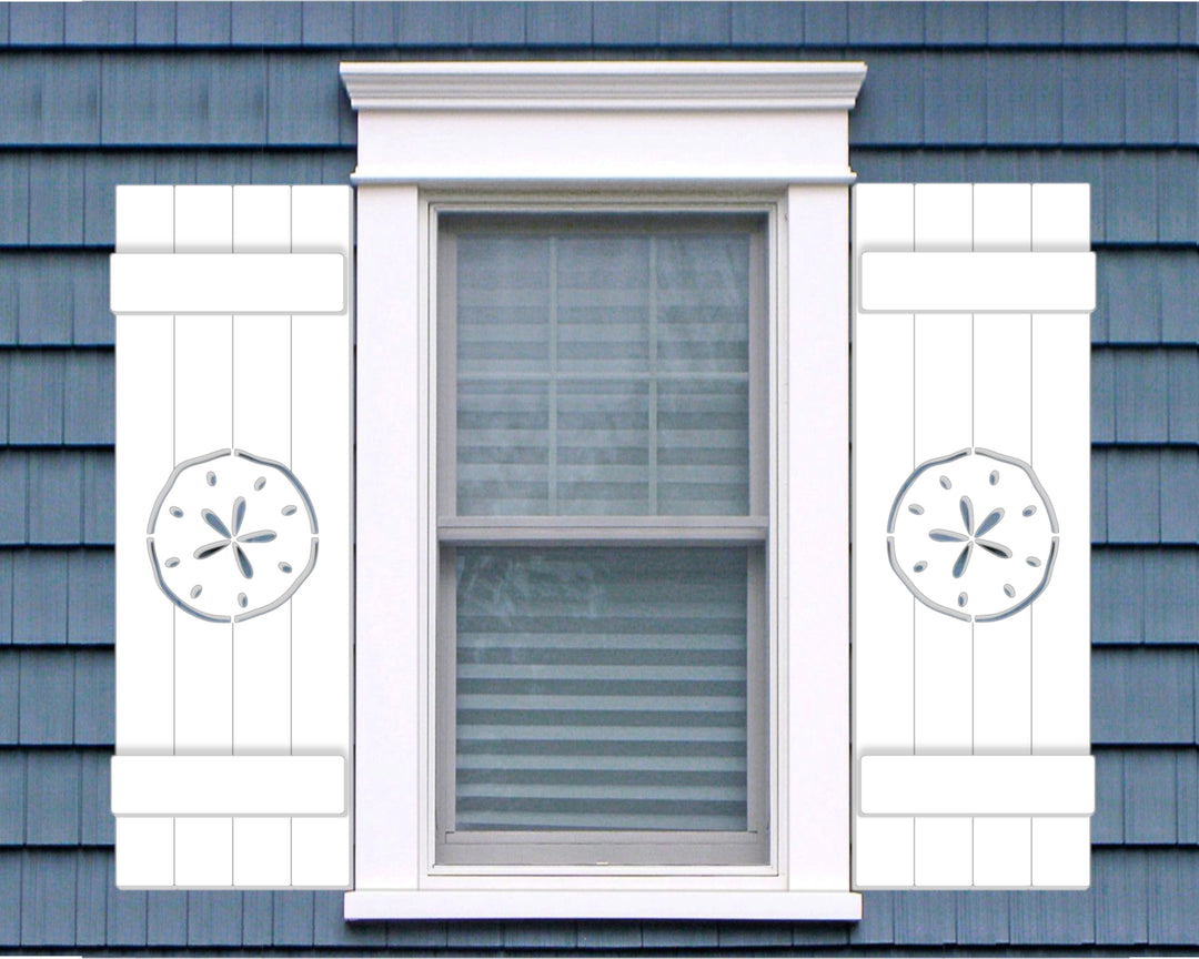 Sand Dollar Design Plastic Window Shutters (Sold in Pairs) - exteriorplastics - Mailbox Accessories - plastic fencing - coastal decoration - nautical decorations - beach house decorations - Florida landscaping - coastal landscaping - nautical landscaping - nautical fences - nautical gates - home improvement - home decor - fencing and barriers